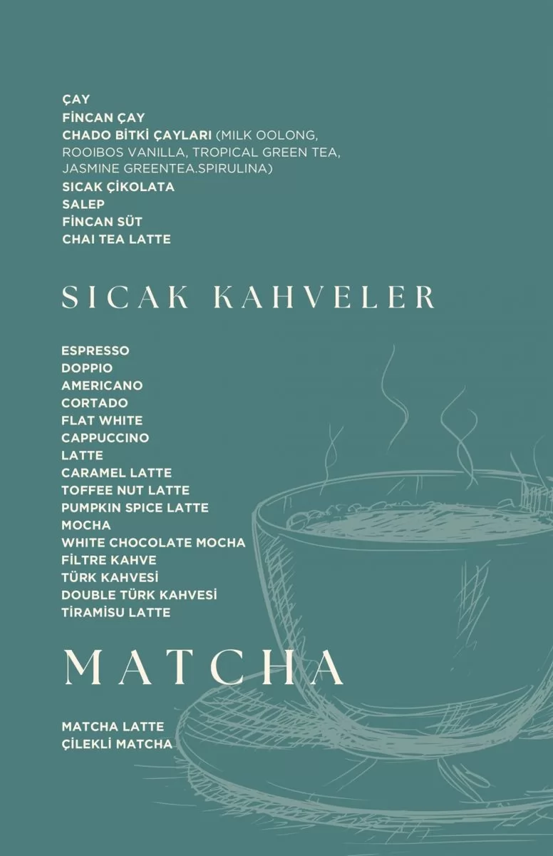 Deneyimli Şefler, Modern Ekipman, Taze Kahve, Latte Çeşitleri, Cappuccino, Günlük Demleme Kahve, Kahvaltı Mekanı, İstanbul Kahvaltı, Taze Kruvasan, Brioche Sandviç, Tatlı Çeşitleri, Pasta Çeşitleri,